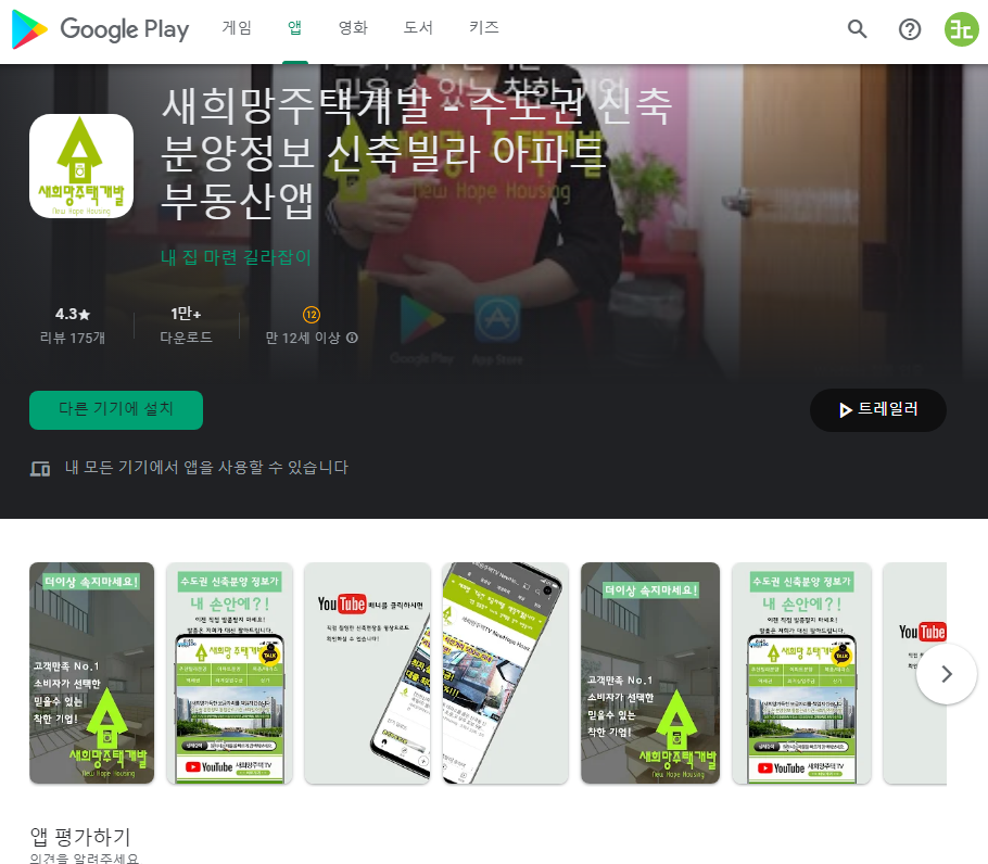업데이트 새희망주택개발 - 안드로이드 웹앱 제작 안드로이드 앱 제작, 외주, 웹앱, 부동산 중개 플랫폼 앱 SNS연동로그인세션 지원 공유하기 게시글 관리 3C SOFT 저작자표시 비영리 변경금지 (새창열림)