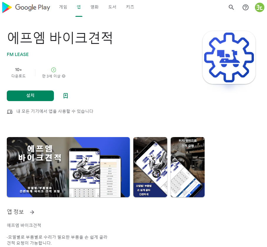 업데이트 에프엠 바이크견적 - 안드로이드 앱 제작, 외주 안드로이드 앱 제작, 외주, 웹앱, 견적용 앱, 마케팅용 앱 웹서버 연동 모델별로 부품별로 수리가 필요한 부품을 손 쉽게 골라 견적 요청이 가능합니다. 공유하기 게시글 관리 3C SOFT 저작자표시 비영리 변경금지 (새창열림)