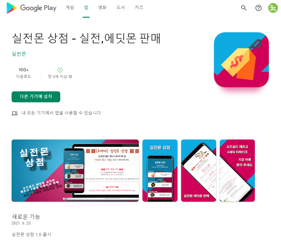 업데이트 실전몬의 포켓상점 - 거래 플랫폼 안드로이드 앱 하이브리드앱, 거래용 플랫폼 앱 SNS연동메뉴별 웹뷰 연동로그인세션 지원 공유하기 게시글 관리 3C SOFT 저작자표시 비영리 변경금지 (새창열림)