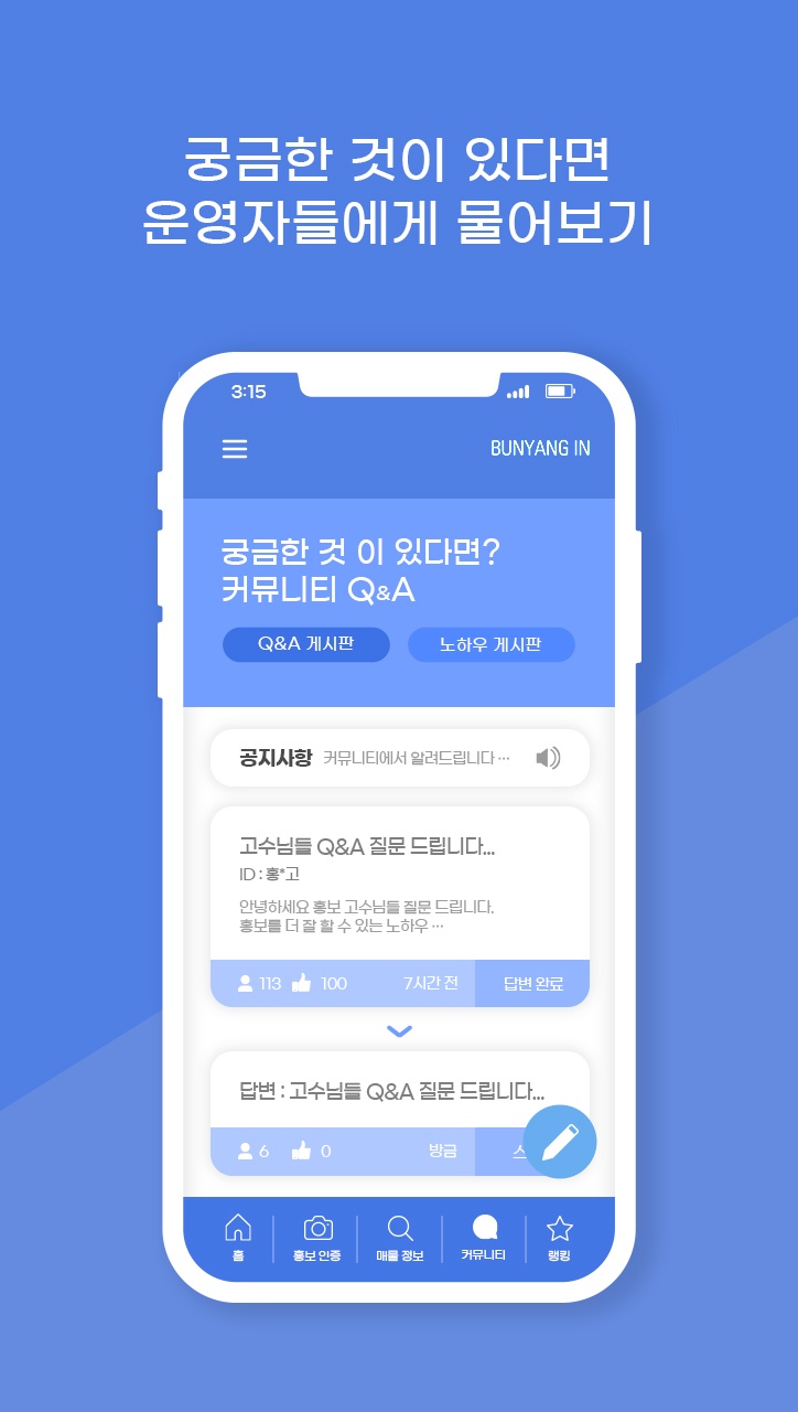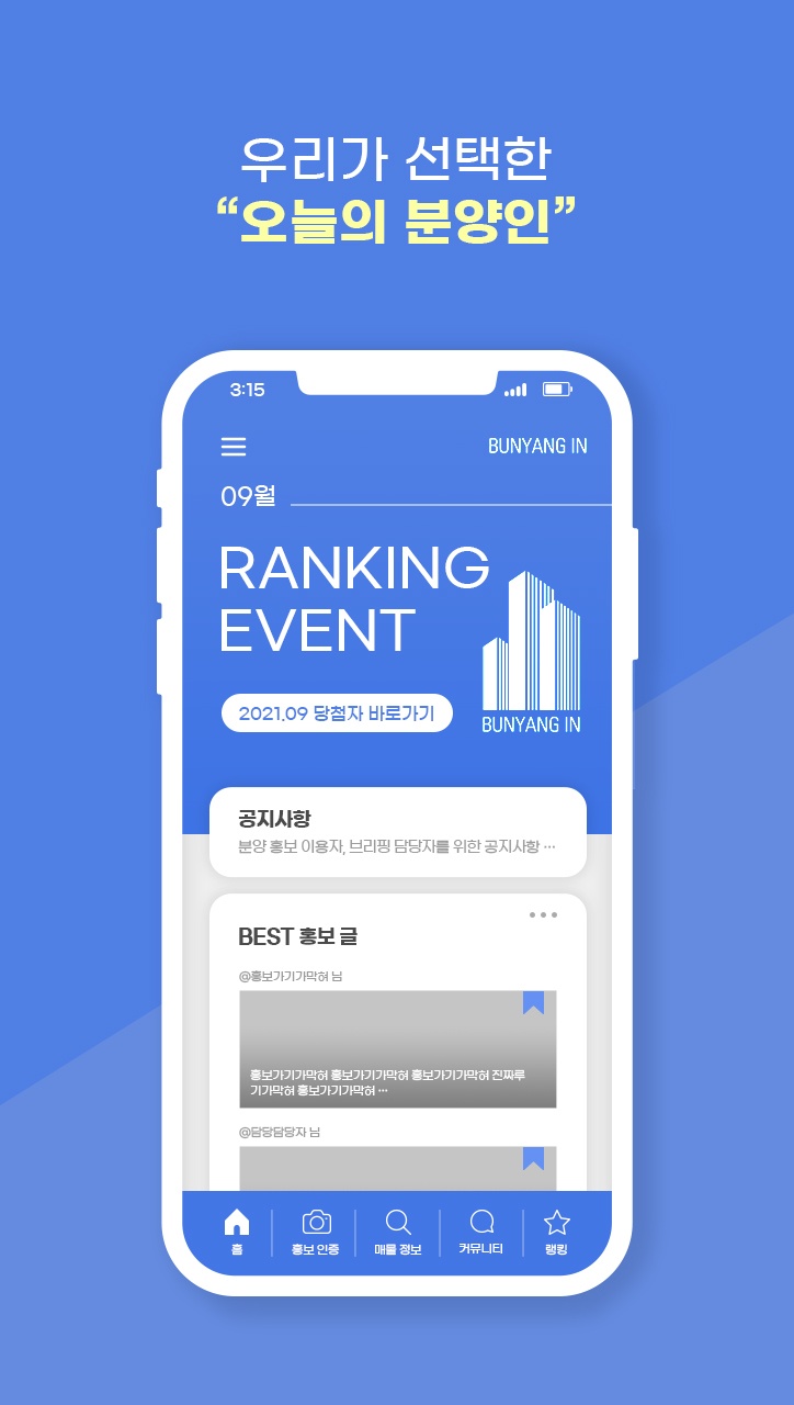 업데이트 분양인 - 안드로이드 네이티브 앱, 외주, 부동산 중개 커뮤니티 안드로이드 네이티브앱, 외주, 부동산 중개 플랫폼, 커뮤니티앱 앱서버 설계 및 연동회원가입 및 관리커뮤니티 서비스SNS로그인세션 지원푸시알림 지원 공유하기 게시글 관리 3C SOFT 저작자표시 비영리 변경금지 (새창열림)